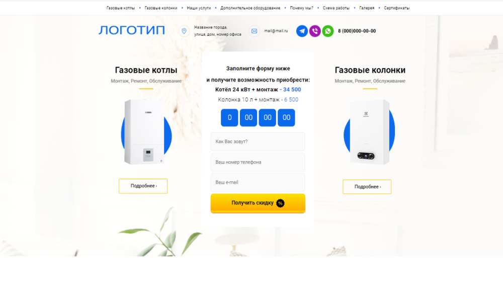 Хотите приобрести удобный и практичный сайт ремонт газовых котлов сделанный с использованием html. Моментальная загрузка и современный дизайн, являются рядом преимуществ в нынешних реалиях современных сайтов. Лаконичный дизайн и продуманная логика отлично отразятся на конверсии сайта, а если еще есть встроенный квиз опросник, то это будет главной фишкой. Одностраничный сайт имеет схему лендинг пейдж, это отлично скажется на конверсии. Landing page - изначально были разработаны для привлечения внимания пользователей и направлены на целевые нажатия покупателей. Если вы хотите быстро сделать запуск в сети интернет, то наш шаблон позволит вам сэкономить время и деньги. Дополнительными услугами к лендингу можно настроить панель администрирования, подключить рекламу в яндекс директ и оповещения в телеграм. Этот лендинг вы сможете заказать через наш интернет магазин. Архив с исходником мы отправим вам на на электронку.