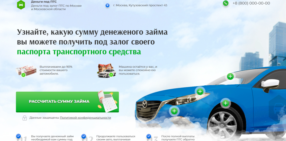 Наш шаблон лендинга "Займ под залог авто" включает в себя: